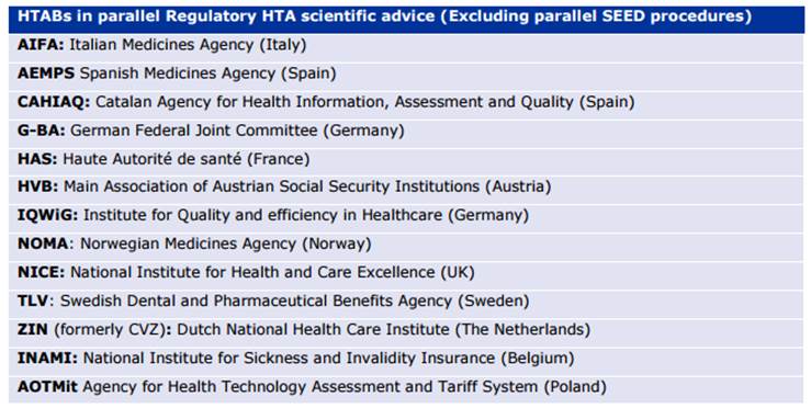 Since 2010, the EMA has initiated a pilot project of parallel HTA-regulatory scientific advice, with the participation of several HTA bodies that allows developers to receive simultaneous feedback from both regulators and national HTA bodies on their development plans for new medicines.